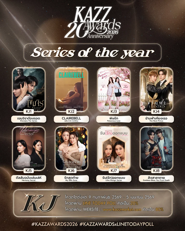 ร่วมเป็นส่วนหนึ่งในการโหวตให้กับดารา นักแสดง และศิลปินที่คุณชื่นชอบ ทั้งเบื้องหน้าและเบื้องหลัง เพื่อเป็นกำลังใจให้กับพวกเขาได้รับรางวัลในงาน KAZZ AWARDS 2026